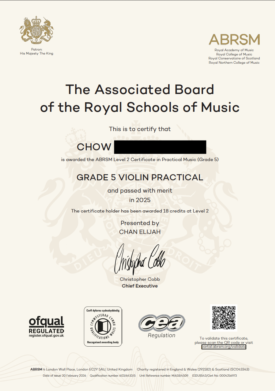 Structured preparation for Grade 3–8 exams and diploma exams (ATCL-LTCL), including repertoire, scales, sight-reading, and aural skills. Proven experience with Grade 8 Distinction results.